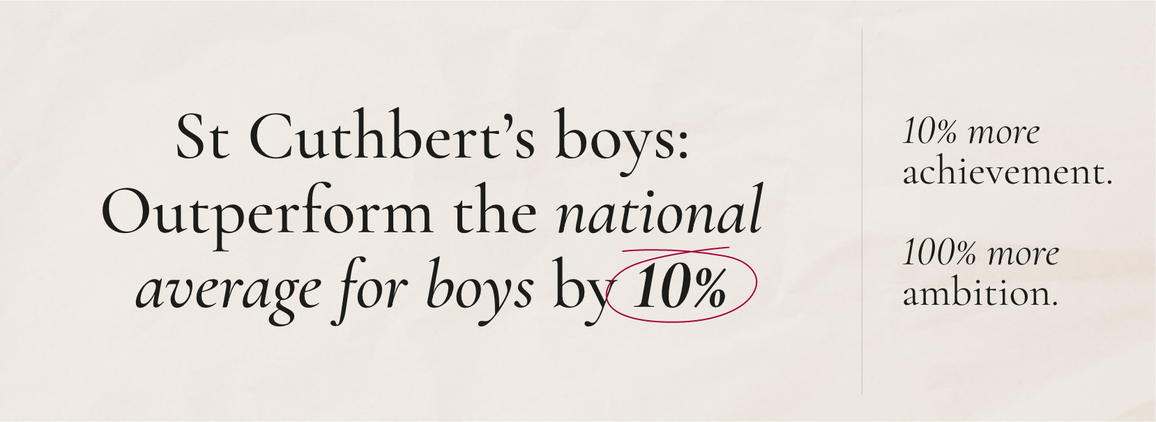 Put into numbers - statistically, boys at St Cuthbert's outperform the boys' national average by 10%.